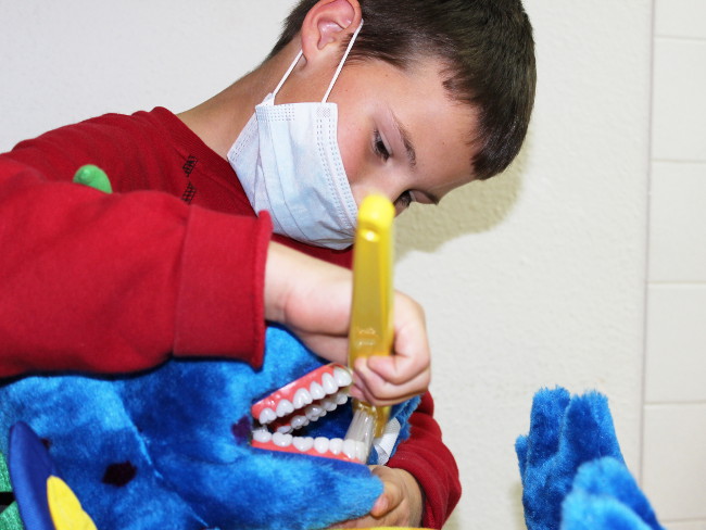 Wir organisieren ein Mal im Monat an einem Nachmittag einen kostenlosen Workshop mit maximal 6 Kindern. Spielerisch lernen die Kinder die 3 Hauptsäulen der Zahngesundheit in ihrem Alter kennen: